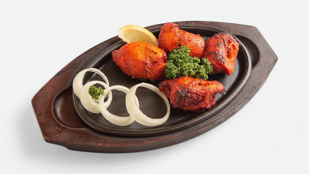 香ばしく焼いたチキンティッカを、トマトベースのソースで仕上げています。