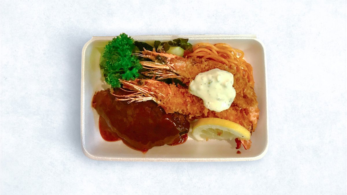 ハンバーグとエビフライ