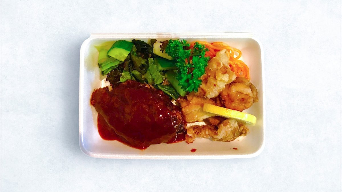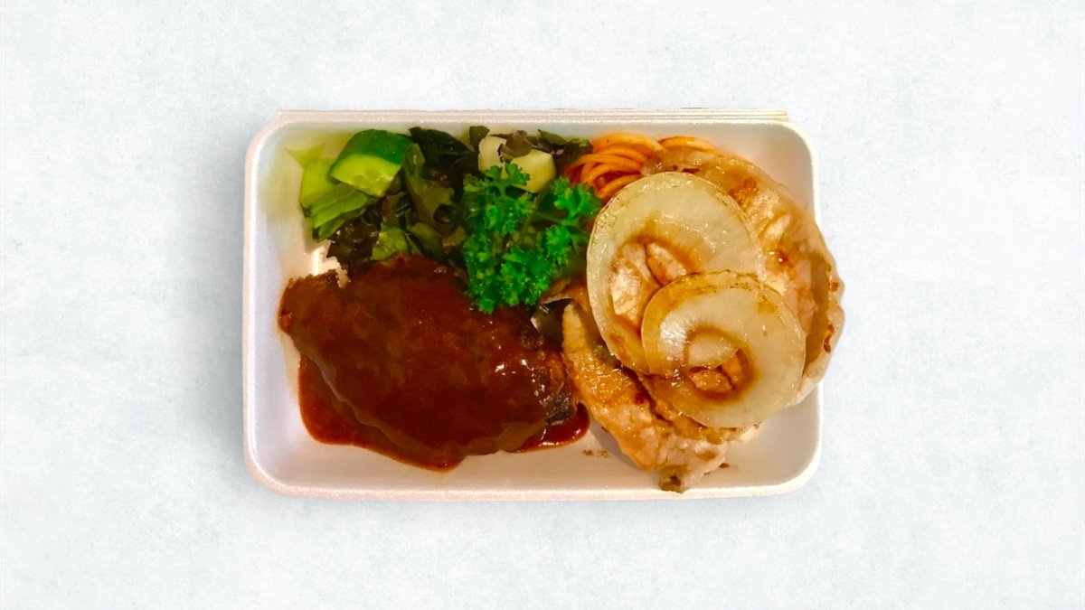 自慢のハンバーグと豚生姜焼き組み合わせ!ご飯がすすむ弁当です。