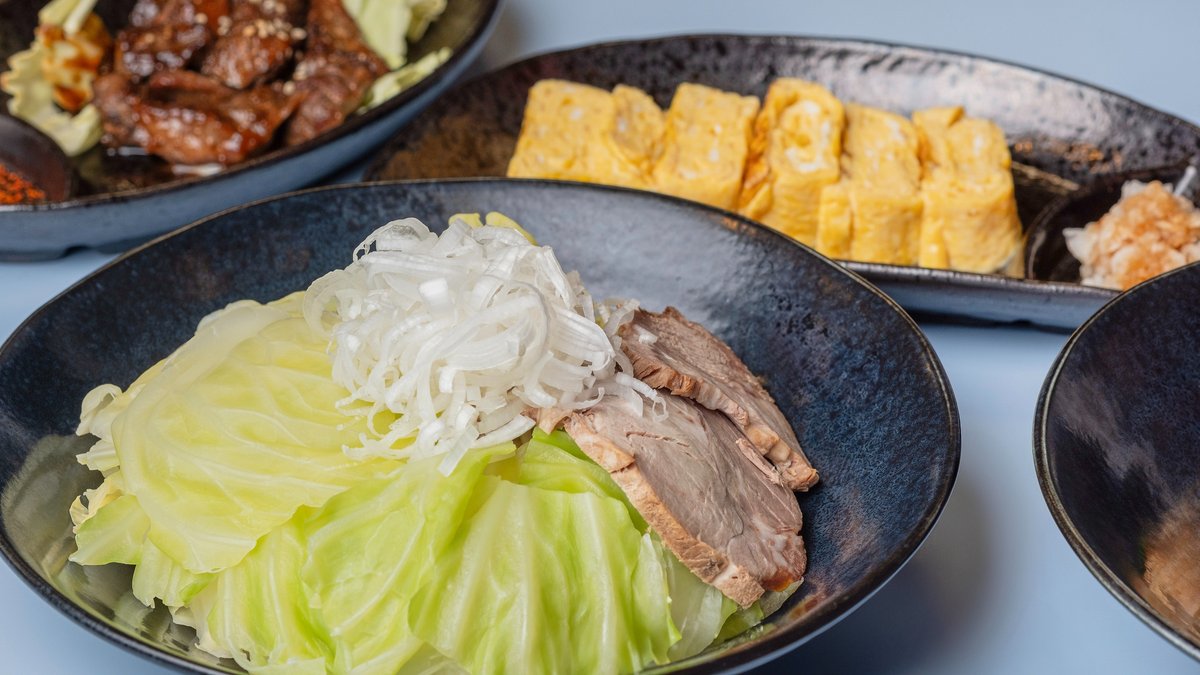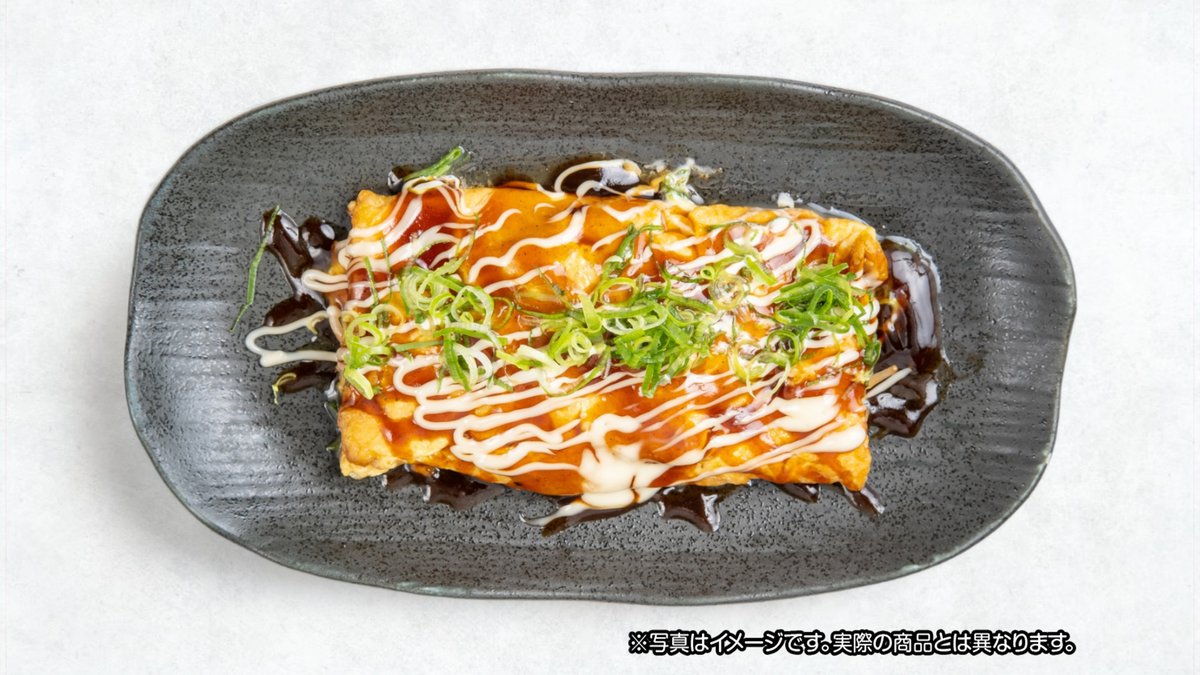 豚肉を卵で包み、ソースとマヨネーズをかけて仕上げました。ボリュームと味わいが楽しめる大阪発祥の鉄板料理です。