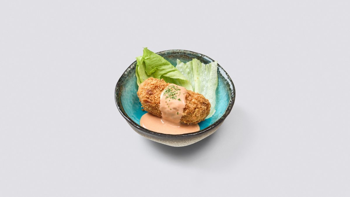 牡蠣の旨味が凝縮されたクリームコロッケです。磯の香りとクリーミーな味わいが口いっぱいに広がります。