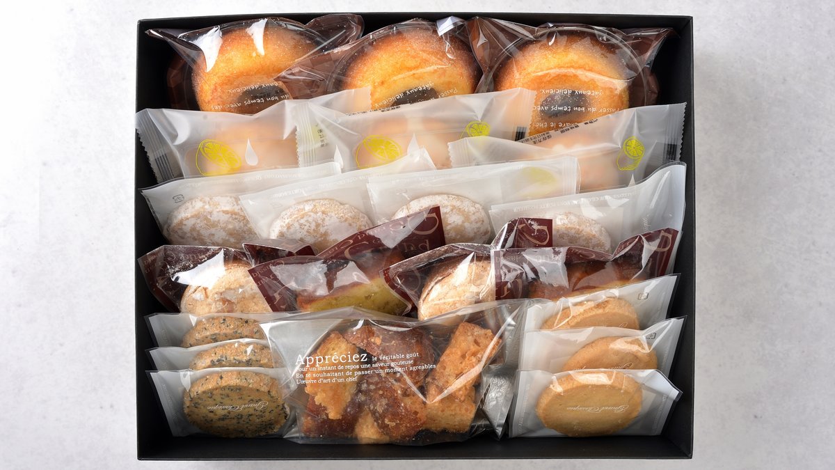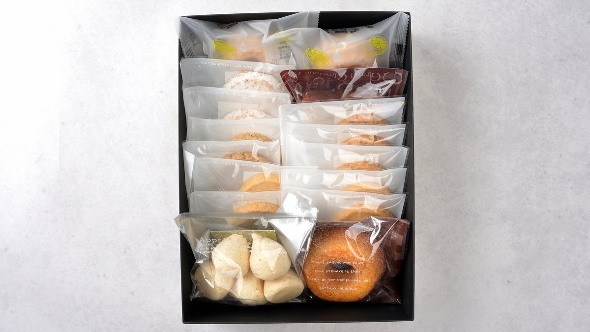 様々な種類の焼き菓子を詰め合わせたアソートです。ティータイムのお供や、ちょっとした手土産にもおすすめです。