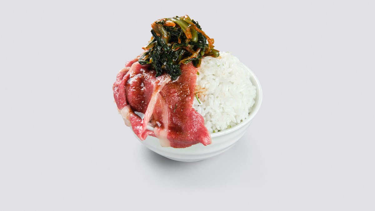 コウネとキムチを組み合わせた丼です。ピリ辛のキムチがお肉の旨みを一層引き立てます。