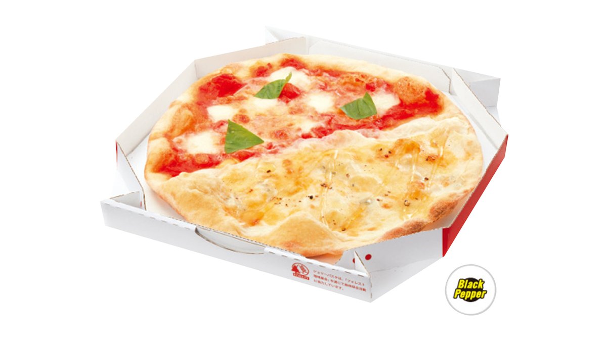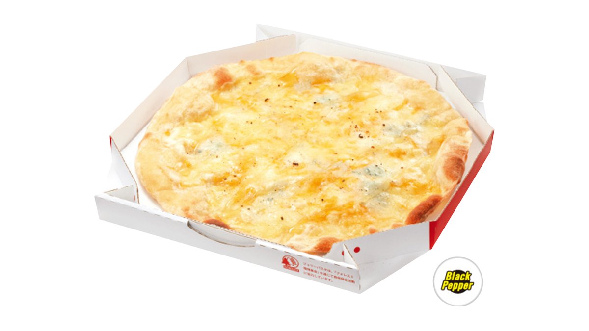 (ホワイトソース)モッツァレラ、チェダー、エグモント、ゴルゴンゾーラ。はちみつ付き。 ・この商品はブラックペッパーを使用しております。 ※生地薄め、大きさ:直径約28cm ※トッピング追加等のカスタマイズはお受けできません。 ※アレルゲン情報はジョリーパスタのホームページをご覧ください。 ピッツァのお召し上がり方 ①温めるのはトースター、フライパンどちらでもOK。 ②ピッツァを2~4切れずつアルミホイルで包みます。トースターの場合はアルミホイルに載せるだけでもOK。 ③3~5分加熱してチーズが溶けたら食べごろです。フライパンの場合は中火で。