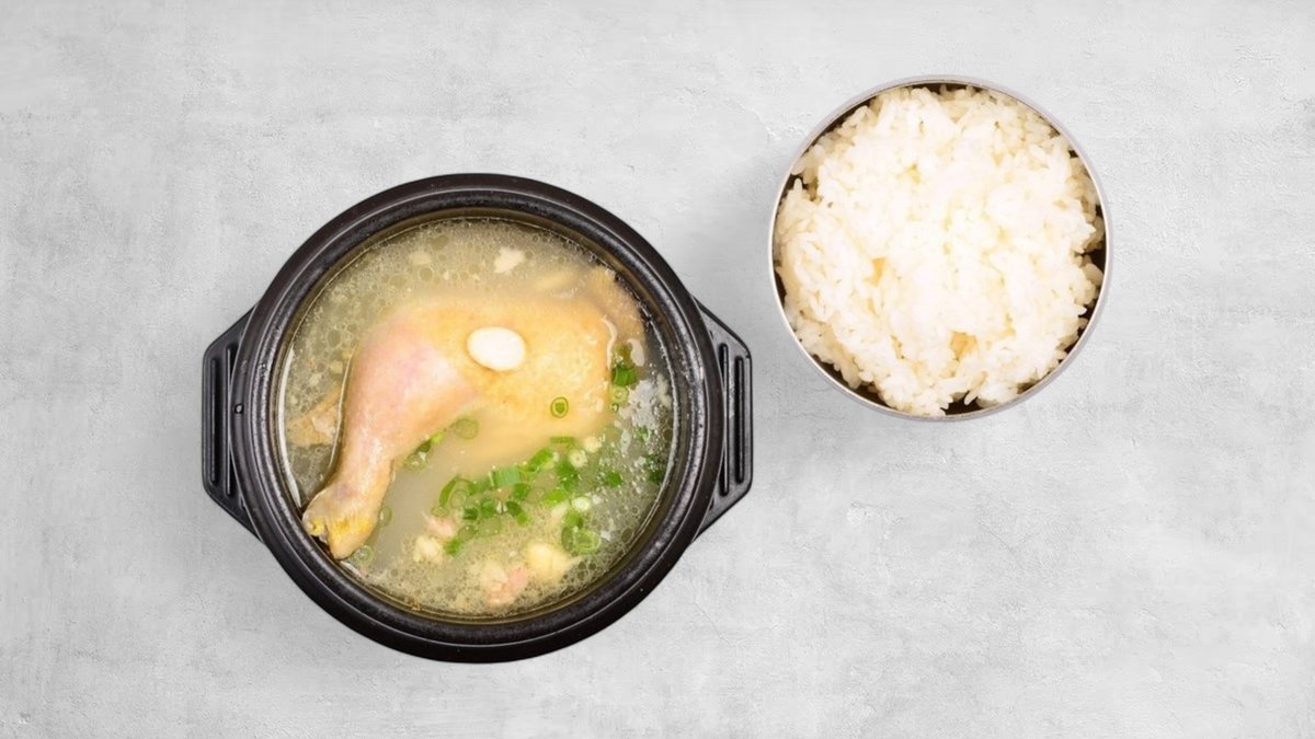 こちらのセットだと単品より130円お得にご注文いただけます! 鶏の旨味がしっかり溶け込んだ参鶏湯(サムゲタン)に、ふっくら炊いた白ごはんを合わせた栄養満点のセットです。身体の内側から温まるやさしい味わいで、食べるほどに滋味深さが広がります。疲れた身体を癒したいときにもおすすめの一品です。