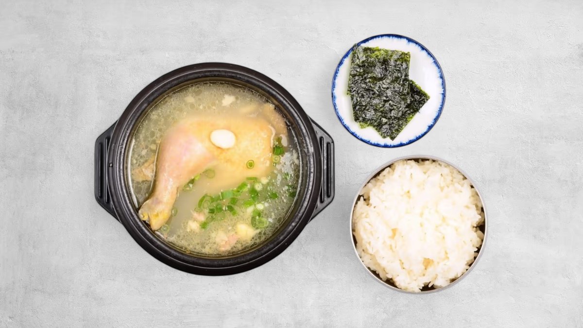 鶏の旨味がたっぷり溶け込んだ参鶏湯(サムゲタン)に、白ごはんと香ばしい韓国のりを添えた特別セットです。滋養豊かなスープとふっくらごはんの相性が良く、韓国のりがさらに風味を引き立てます。満足感も高く、身体をしっかり労わりたい時にぴったりの一品です。 こちらのセットだと単品よりお得にご注文いただけます。