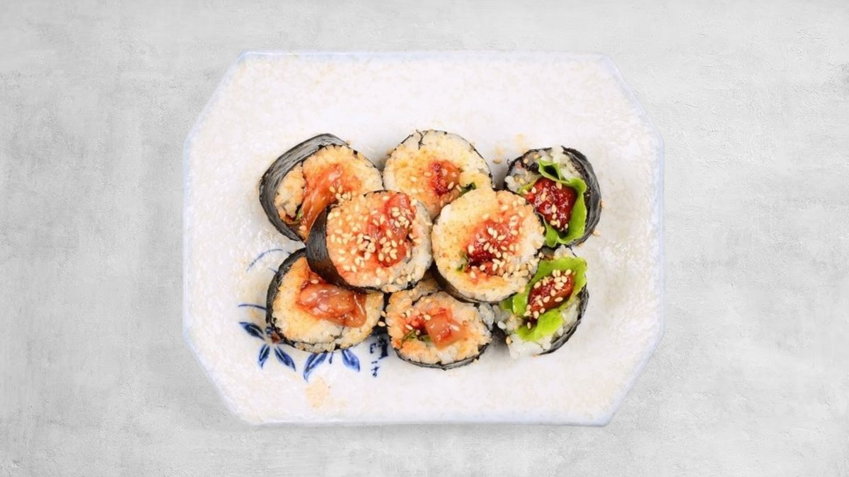 コリコリしたチャンジャを、塩・ごま・ごま油で味付けしたご飯で巻いています。 ご飯にも、おつまみにも最適です。