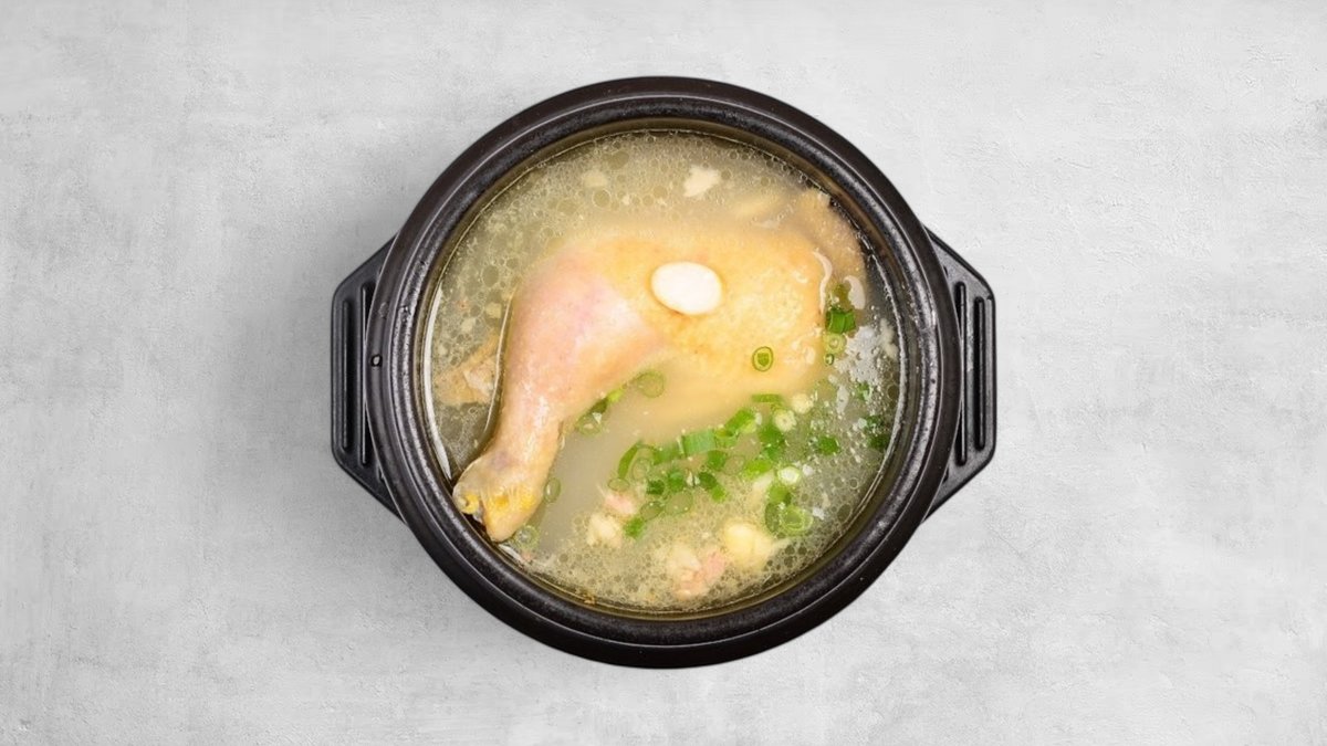 韓国のスタミナ料理。にんにくや高麗人参などを入れた薬膳スープ料理です。コラーゲンたっぷり、元気になります!ご飯を入れて食べても美味しいです。