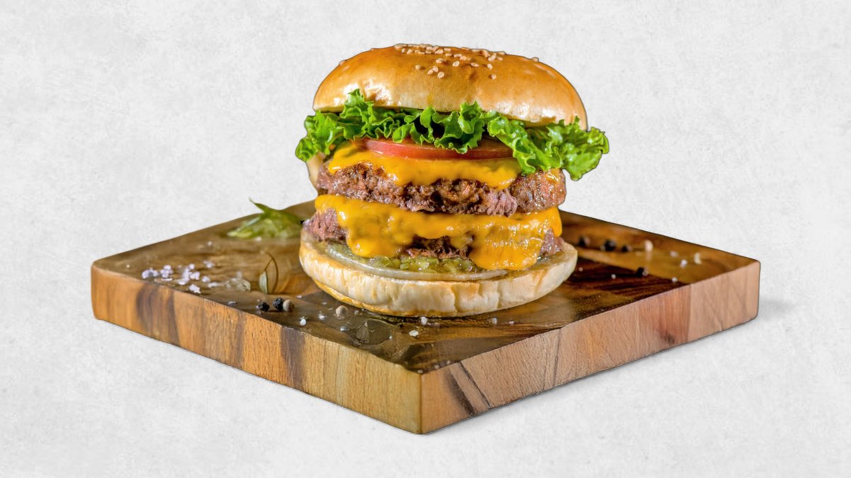 自慢のビーフパティを2枚使用した食べ応え満点の逸品です。 ※オプションからサイドメニューが追加できます。