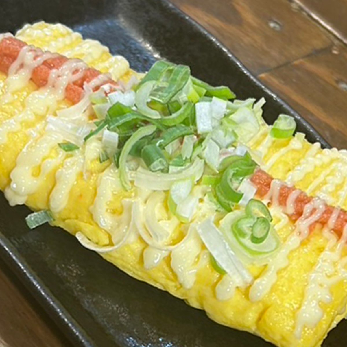 だしまき玉子に明太子にマヨネーズにネギがトッピングされてる店内でも人気商品