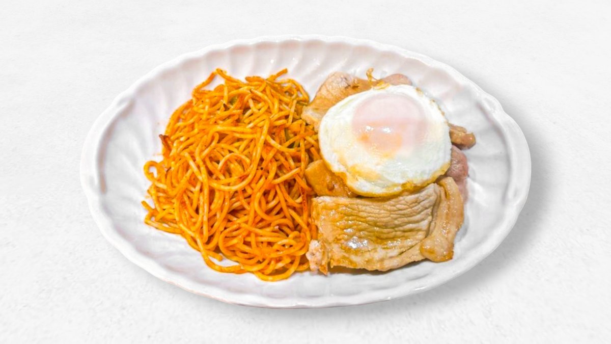 ポークスペシャルライス(目玉のせ豚丼にスパゲッティのコンビ)