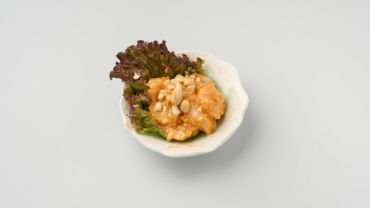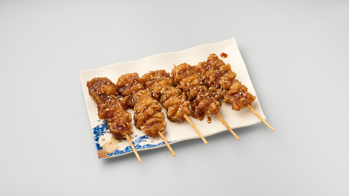 鶏皮を香ばしく焼き、甘辛いタレで仕上げた串焼きです。ジューシーな旨味が広がります。