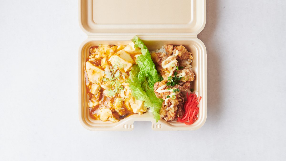 麻婆豆腐とからあげがセットになったお弁当です。