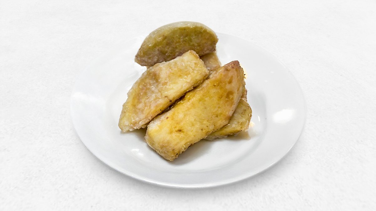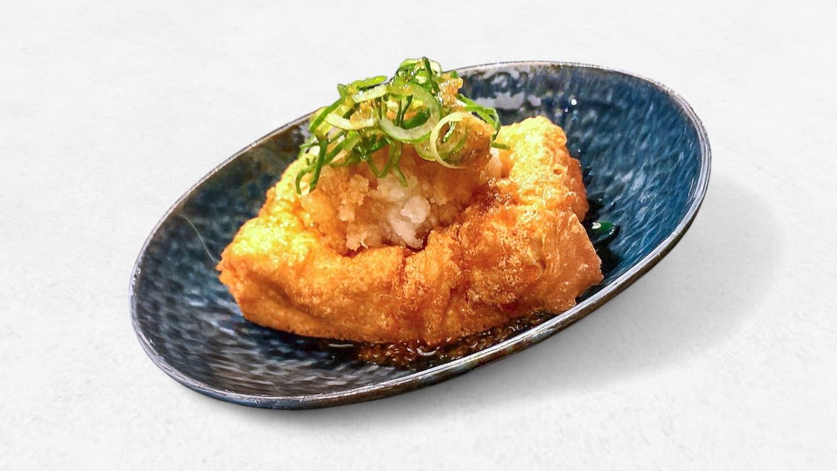 水を抜かずに絹豆腐を揚げてます!それが可能なのも食材の水分を一切逃す事なく揚げれるDr. Flyで揚げているからこそ!是非お召し上がりください!