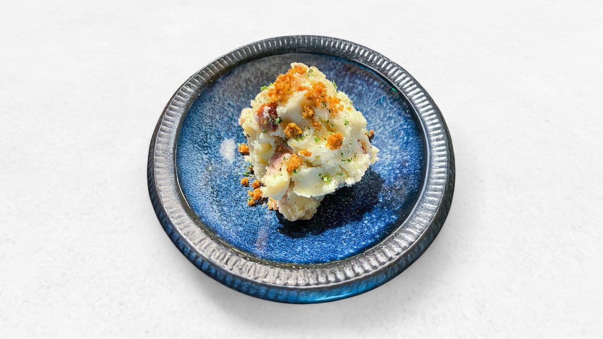 店内で大人気の海老チリマヨ!Dr. Flyで揚げてるのでカロリーもオフ!店内では立てて提供してますが倒した状態での配達となりますのでご了承ください 添えてあるポテサラのマヨネーズは無添加マヨネーズ使用です。