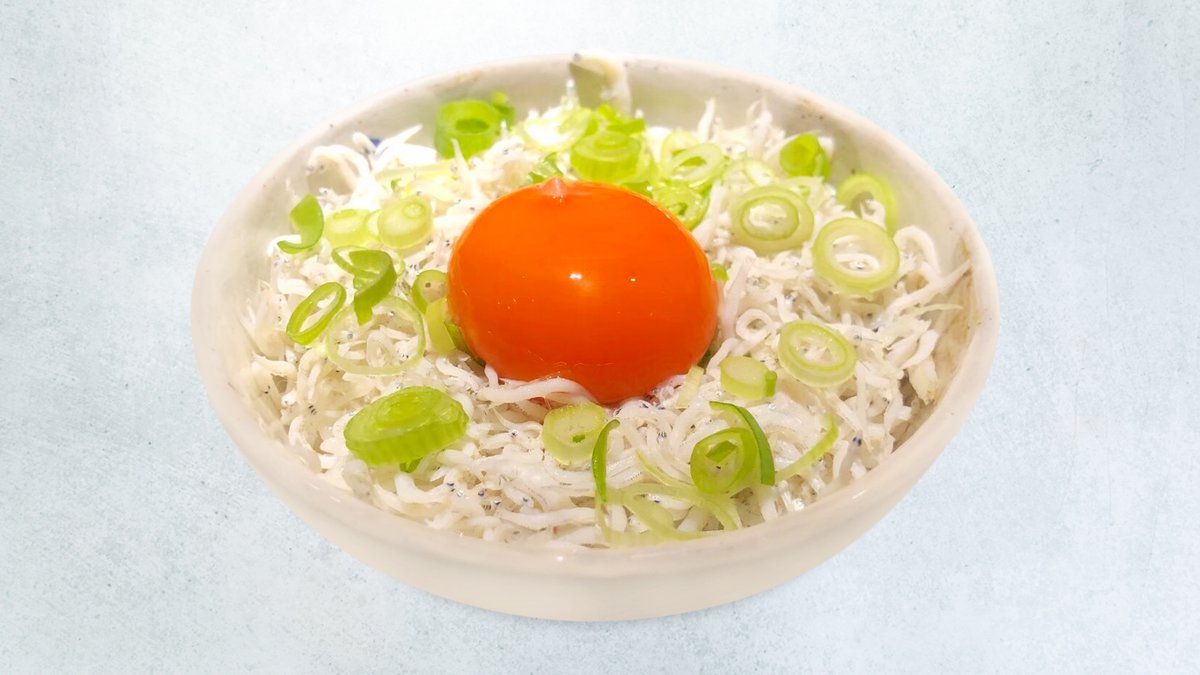 『海老で鯛を釣る麺堂 神楽』の人気メニュー 産地直送のふわふわ篠島しらすに こだわりのブランド卵が濃厚に絡み口の中に幸せが広がります。