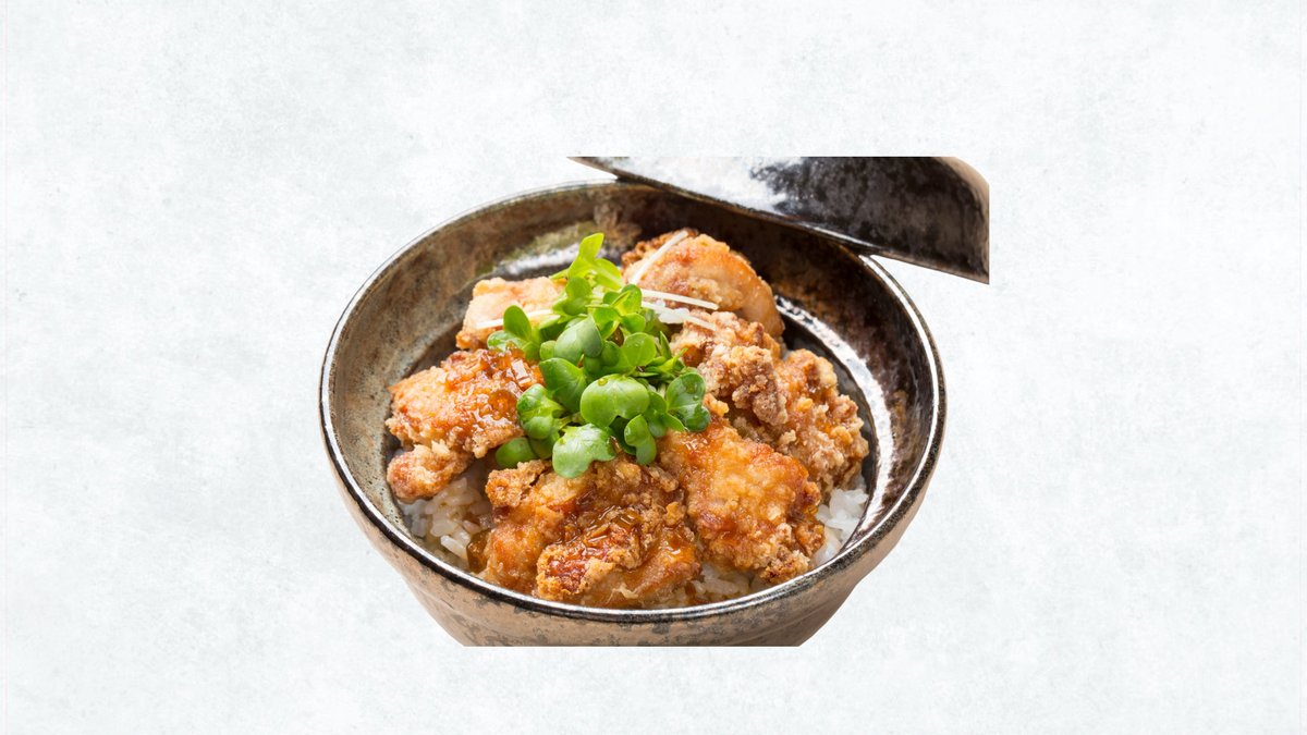 カリッと揚げた唐揚げをのせた丼。ジューシーでボリューム満点。