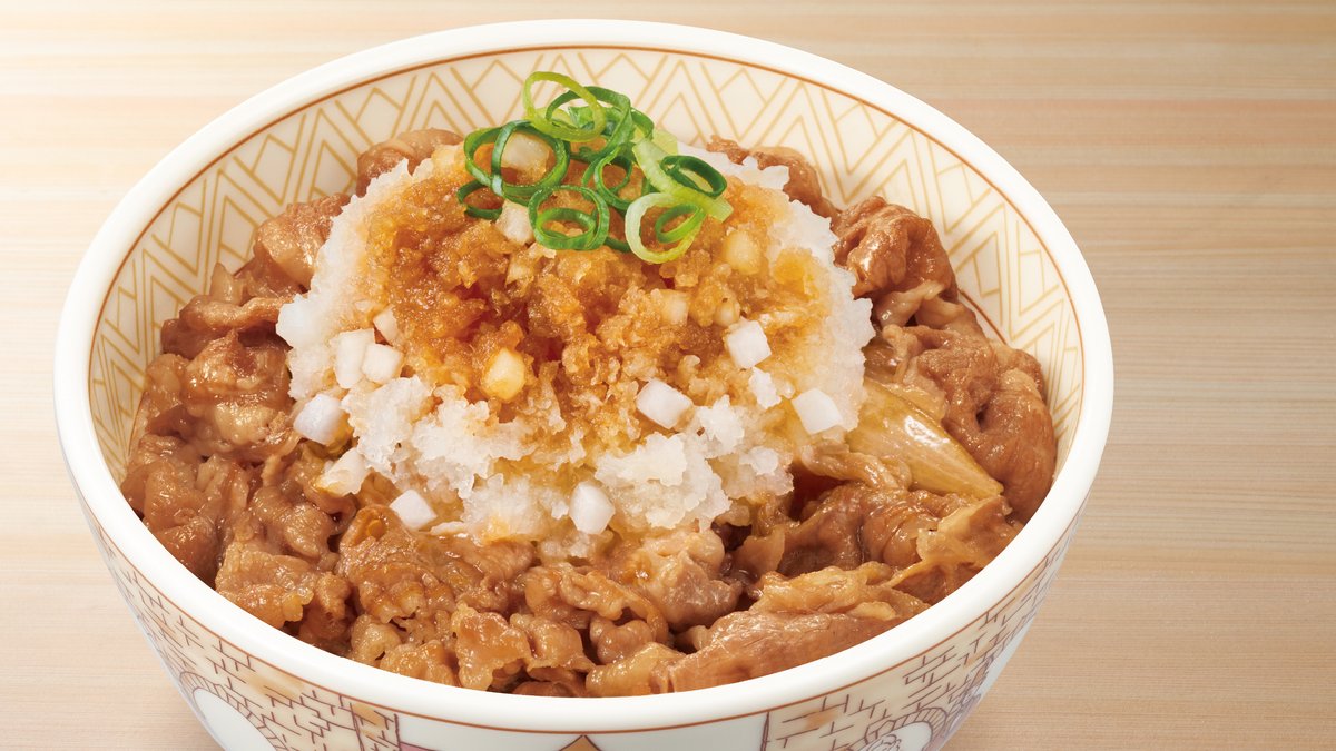 酸味のきいたゆずポン酢をかけた、“ふわふわ”の大根と“ザクザク”の大根の2種類の食感の大根おろしをトッピングした商品です。サイズ、つゆだく・つゆぬき選択いただけます。 ※アレルギー情報は「すき家」のホームページをご覧ください。
