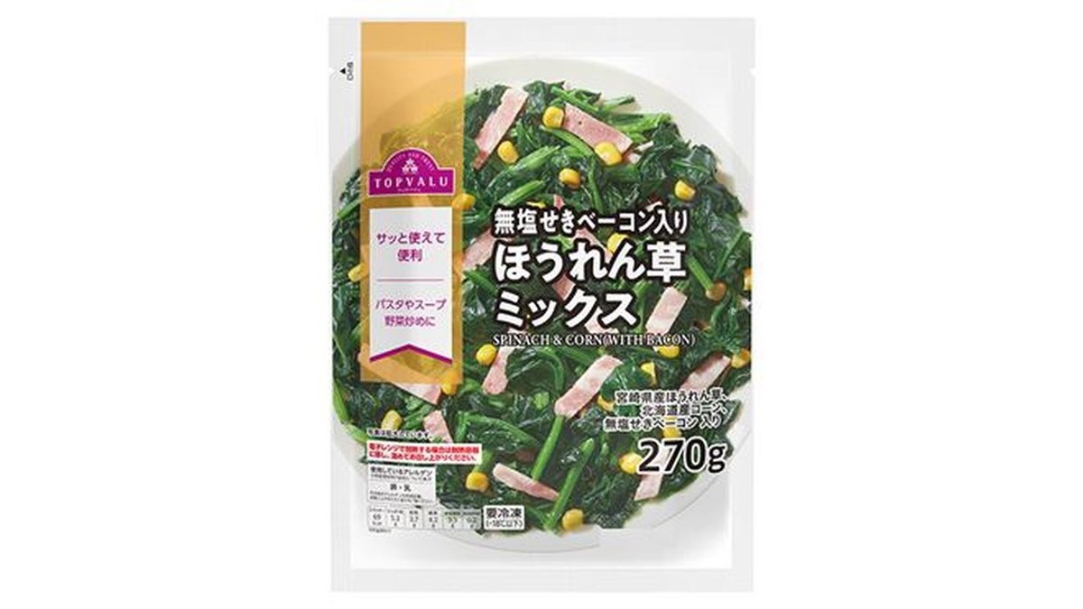 トップバリュ 無塩せきベーコン入りほうれん草ミックス 270g