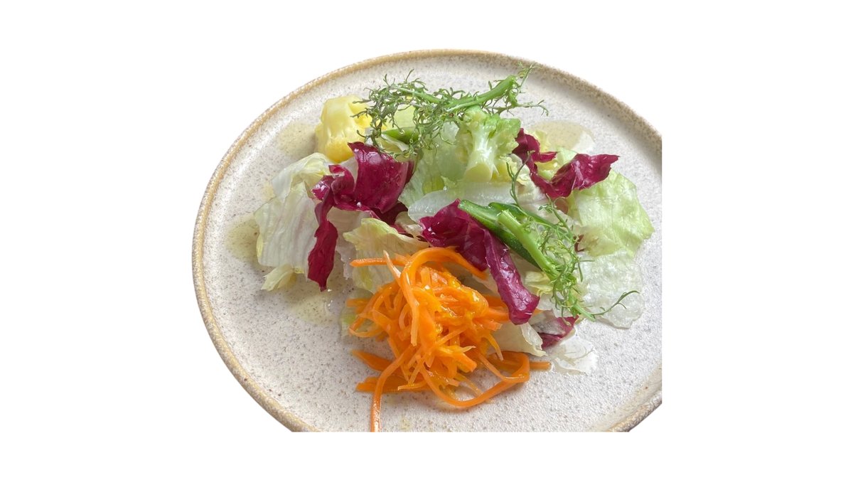 ナイフでカットしながら、たっぷり添えた五目サラダと一緒にお召し上がりください。
