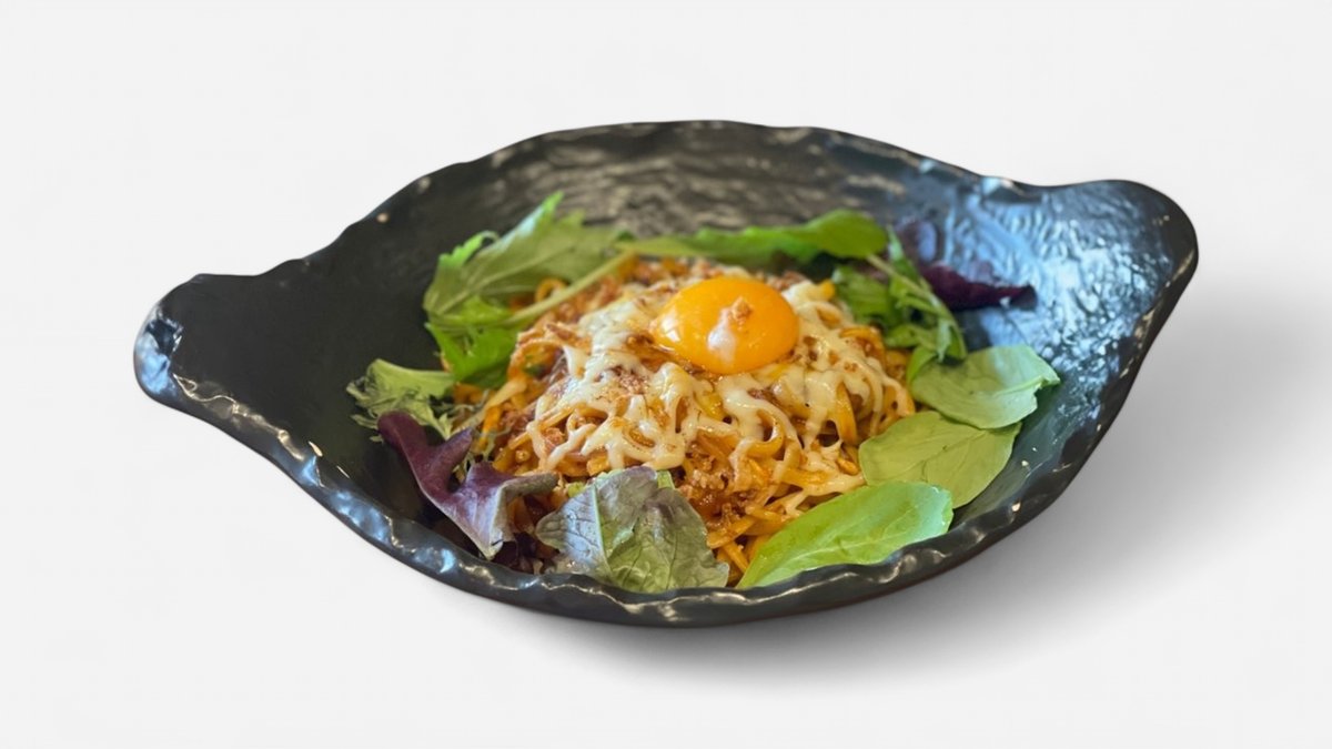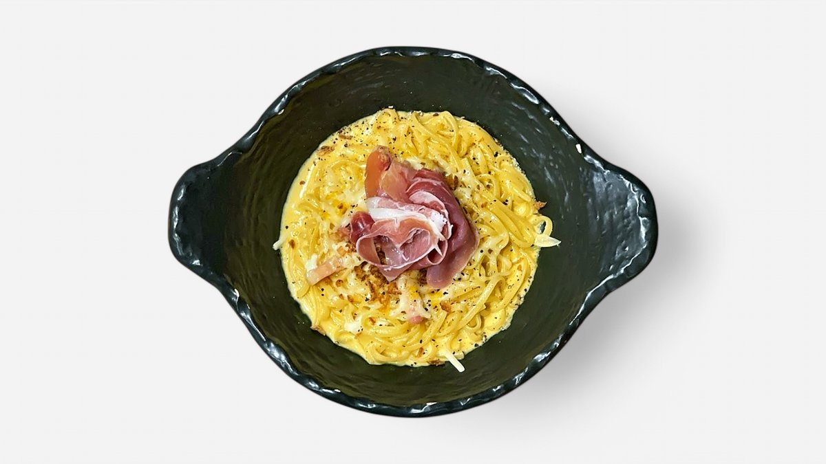 生ハムと濃厚カルボナーラ