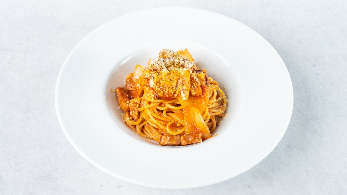ベーコンと玉ねぎのアマトリーチェ風トマトソース