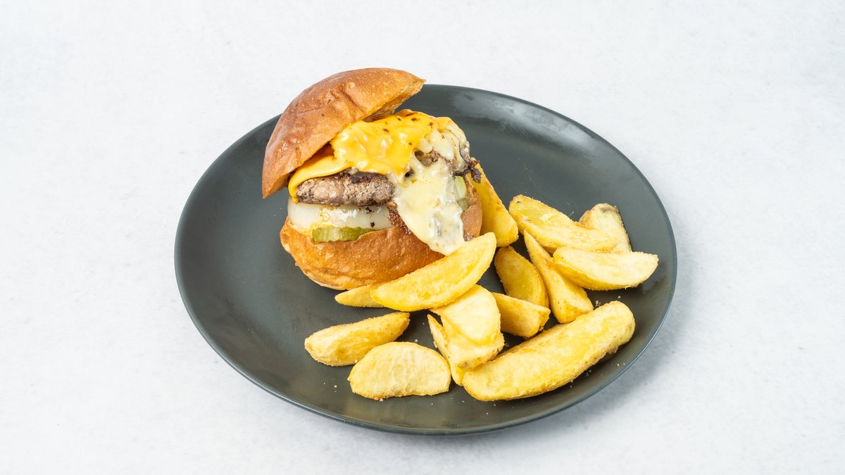 パティ、オニオン、ピクルス、2種のチーズ ※フレンチフライ付き