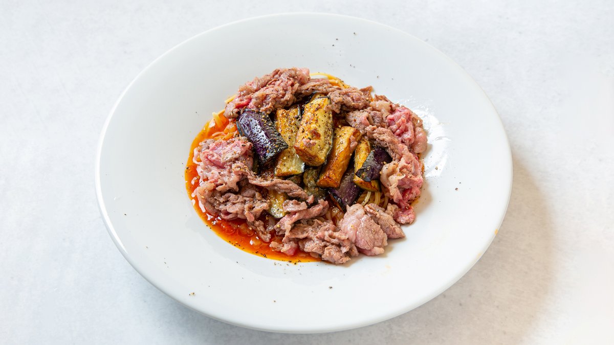 美保ちゃんのとろとろ茄子A4黒毛和牛しゃぶ肉トマト麺