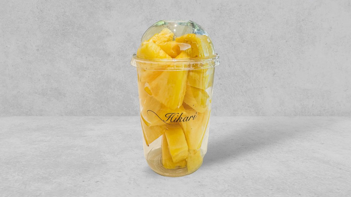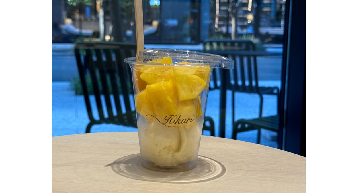 ひかりカフェで人気のある濃厚なバニラアイスとフレッシュな甘いパイナップルを一緒にお召し上がりください。