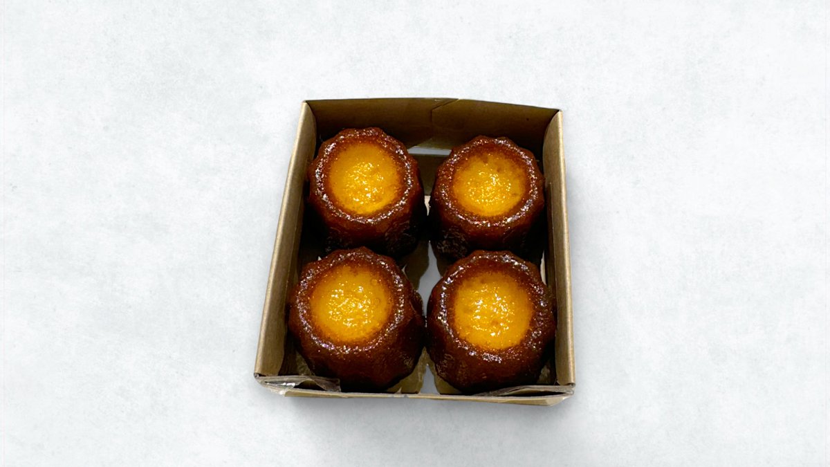 カヌレ4個セット。フレンチパイ風の香ばしい外皮ともっちり中身が調和した至福の一品。