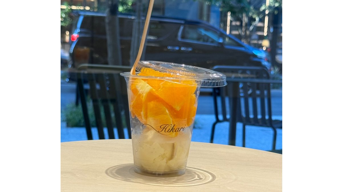 ひかりカフェで人気のある濃厚なバニラアイスとフレッシュなオレンジをお召し上がりください。