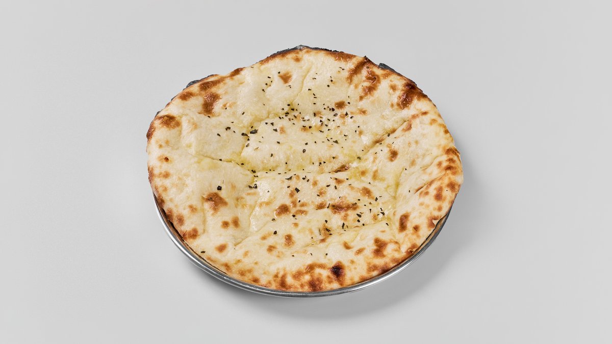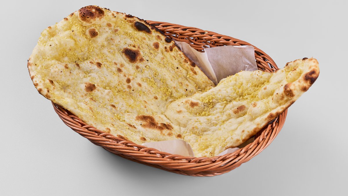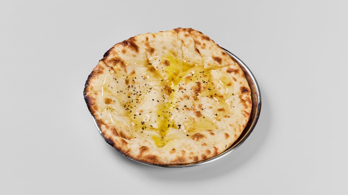 バターをたっぷりと塗って焼き上げた、風味豊かでリッチな味わいのナンです。