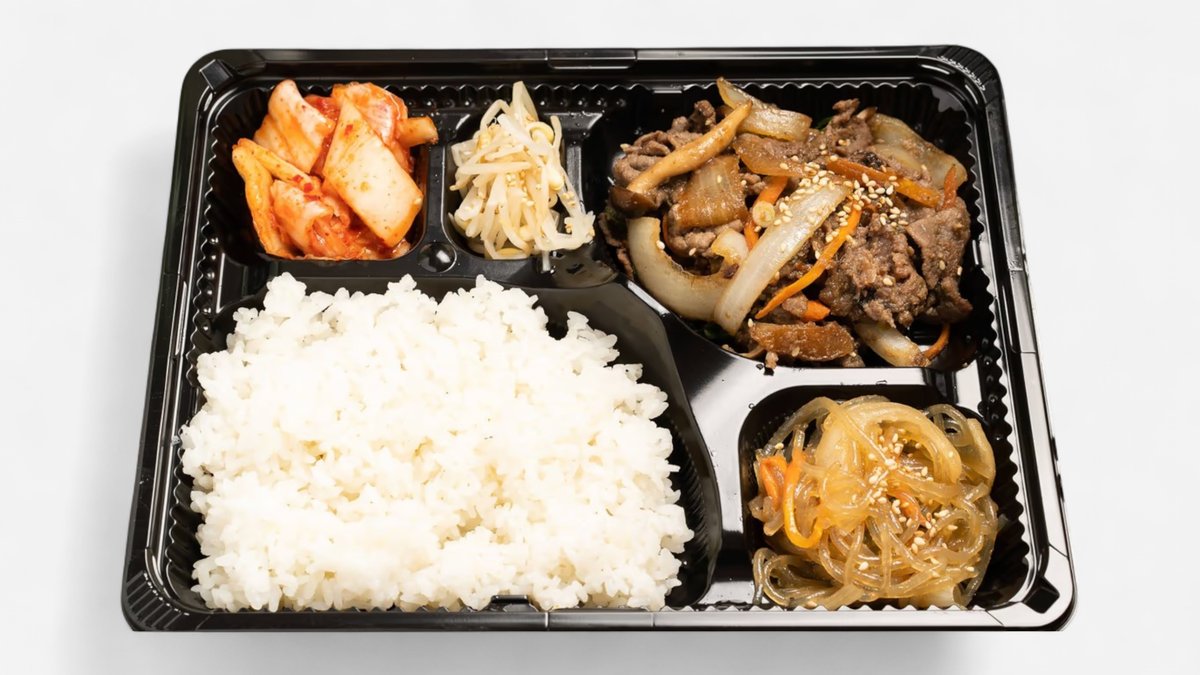 甘辛い特製ダレで煮込んだ牛肉の旨味を味わえる、お店自慢のお弁当です。プルゴギ、チャプチェ、キムチ、もやし、白ご飯のセット。 ※写真はイメージです。実際の商品と多少異なる場合がございます。
