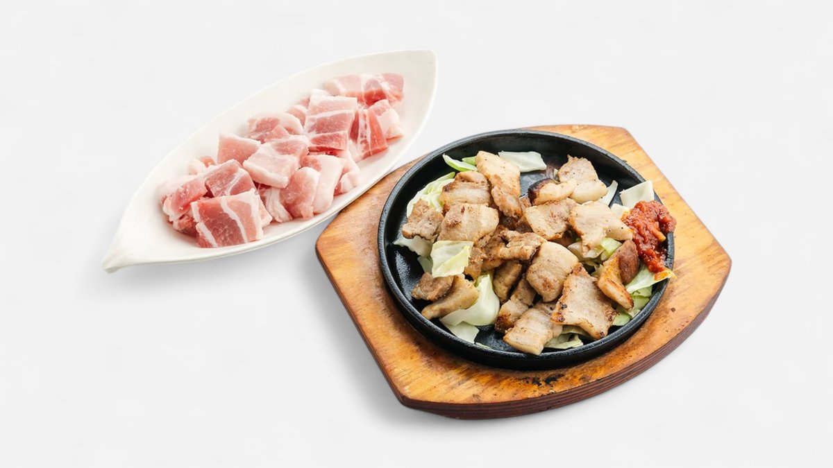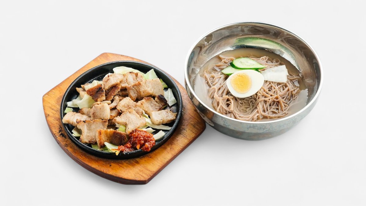ジューシーなサムギョプサルとお好きな麺を組み合わせた欲張りセット。サムギョプサル+冷麺1品をお選びいただけます。 삼겹살200g+냉면1품선택 ※写真はイメージです。実際の商品と多少異なる場合がございます。