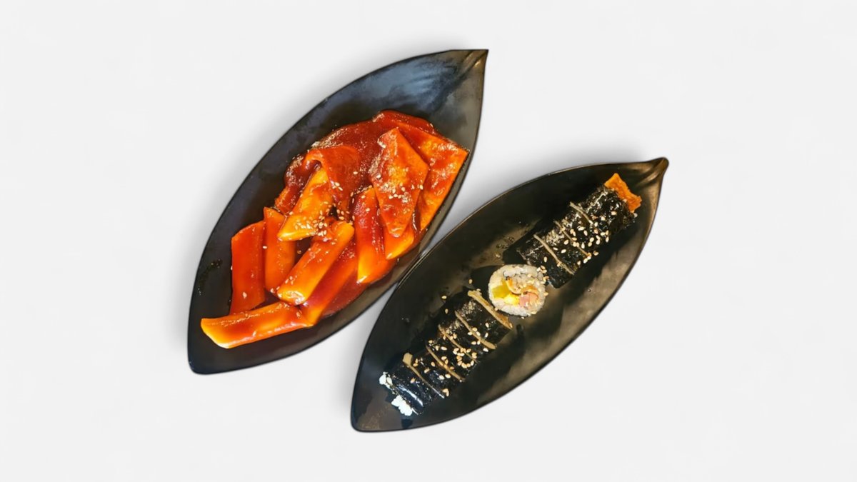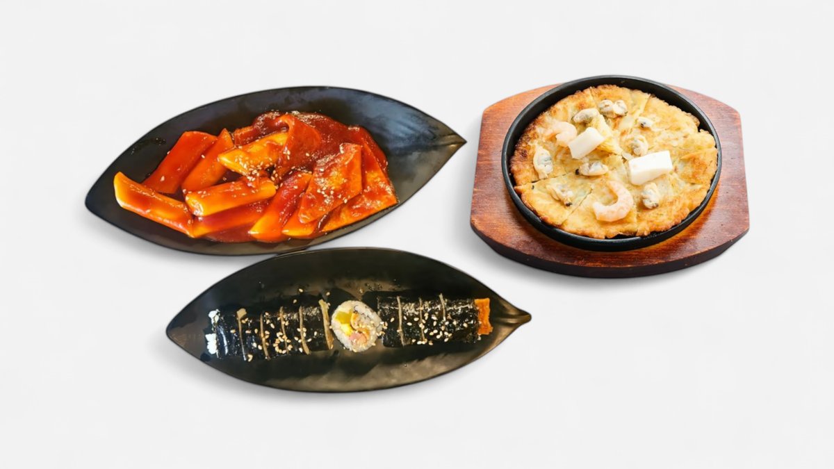 韓国屋台の人気メニューを一度に楽しめる欲張りセット!キンパ1本+選べるトッポキ1人前+選べるチヂミ1枚 (1~2人前)。김밥1줄 떡볶이1인 전 (1~2인분) シェアでも楽しめる大満足のセットです。※写真はイメージです。実際の商品と多少異なる場合がございます。