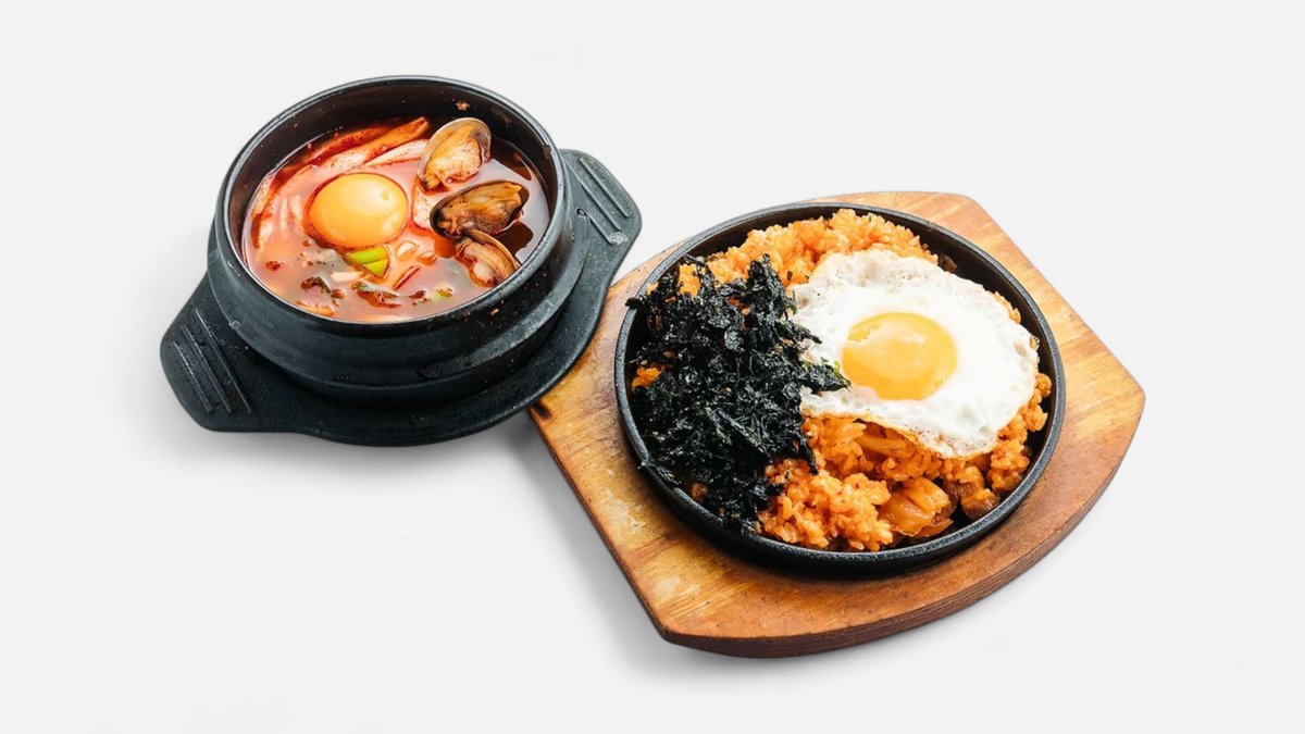 人気No.1スープ「スンドゥブ」とご飯系メニューが一度に楽しめる豪華セット。体も心も温まります。純豆腐チゲ+ご飯物はオプションからお好きなものをお選びください。 순두부 찌개+밥류 1품선택 ※写真はイメージです。実際の商品と多少異なる場合がございます。
