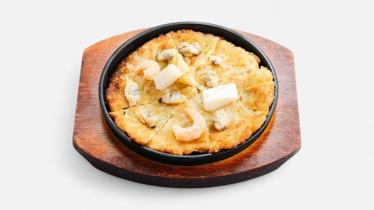 外はカリッ、中はふんわり!人気のキンパに生玉子を付けて香ばしく焼いた新感覚のチヂミです。※写真はイメージです。実際の商品と多少異なる場合がございます。
