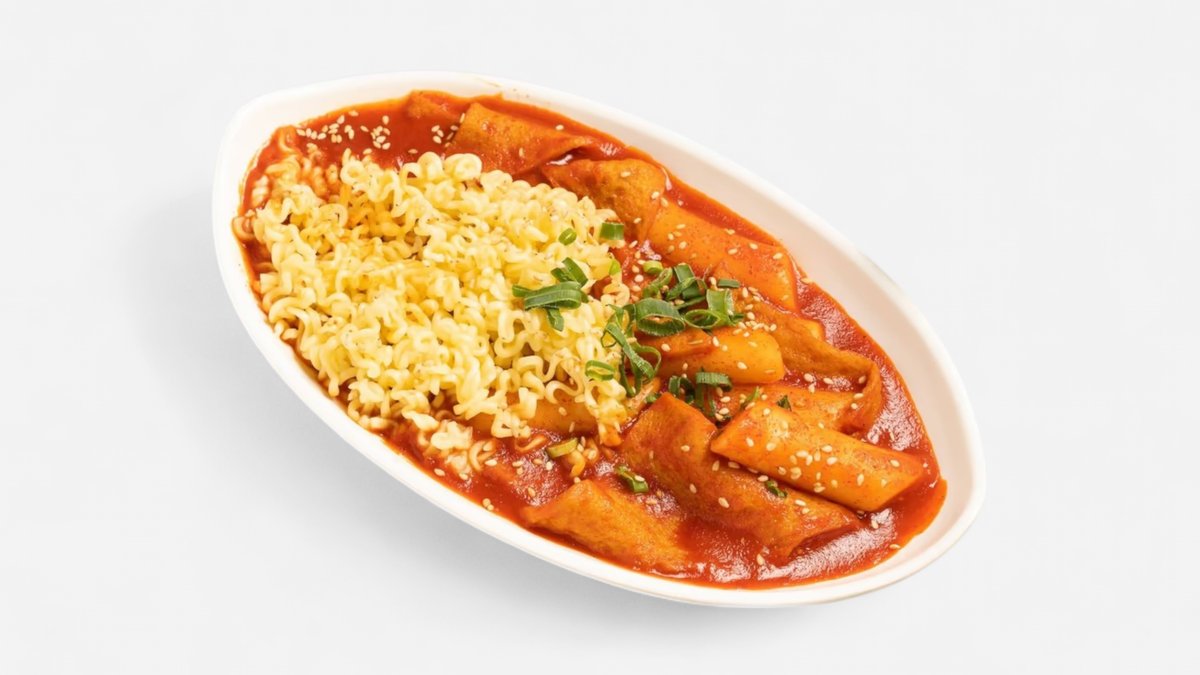 定番の甘辛トッポキに、おでんをプラスした王道スタイル。モチモチのお餅とピリ辛ソースがクセになります。 ※ラーメンサリは別料金となります。 ※写真はイメージです。実際の商品と多少異なる場合がございます。