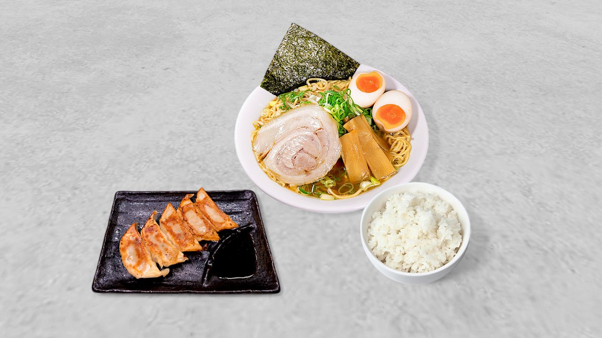 美味!ラーメンに唐揚げとライスが付いたセット。餃子+ライス・ラーメン