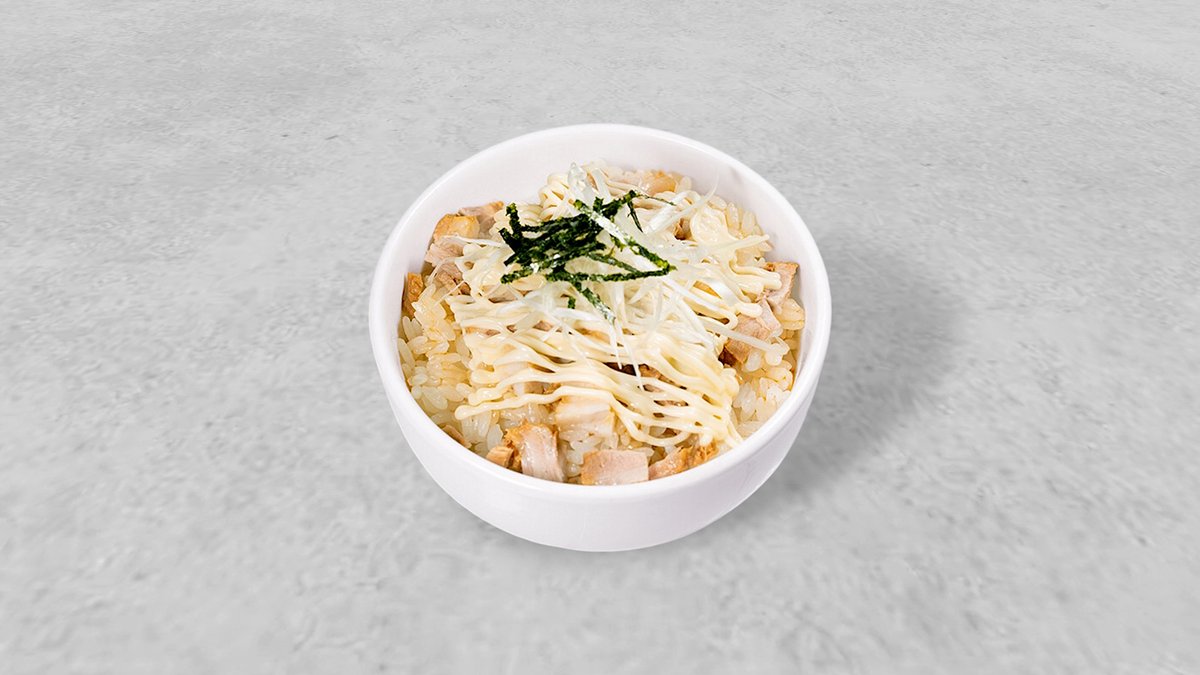 ジューシーなチャーシューにマヨネーズをかけたご飯ものです。お手軽に満足感が得られます。