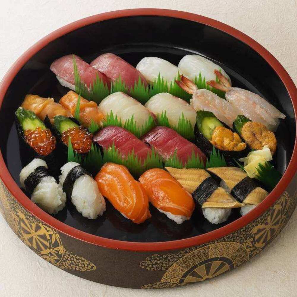 ※写真は1人前です。 <内容>中トロ・マグロ・鯛・カンパチ・いくら・うに・有頭エビ・数の子・赤貝・エンガワ・穴子・飾り玉子