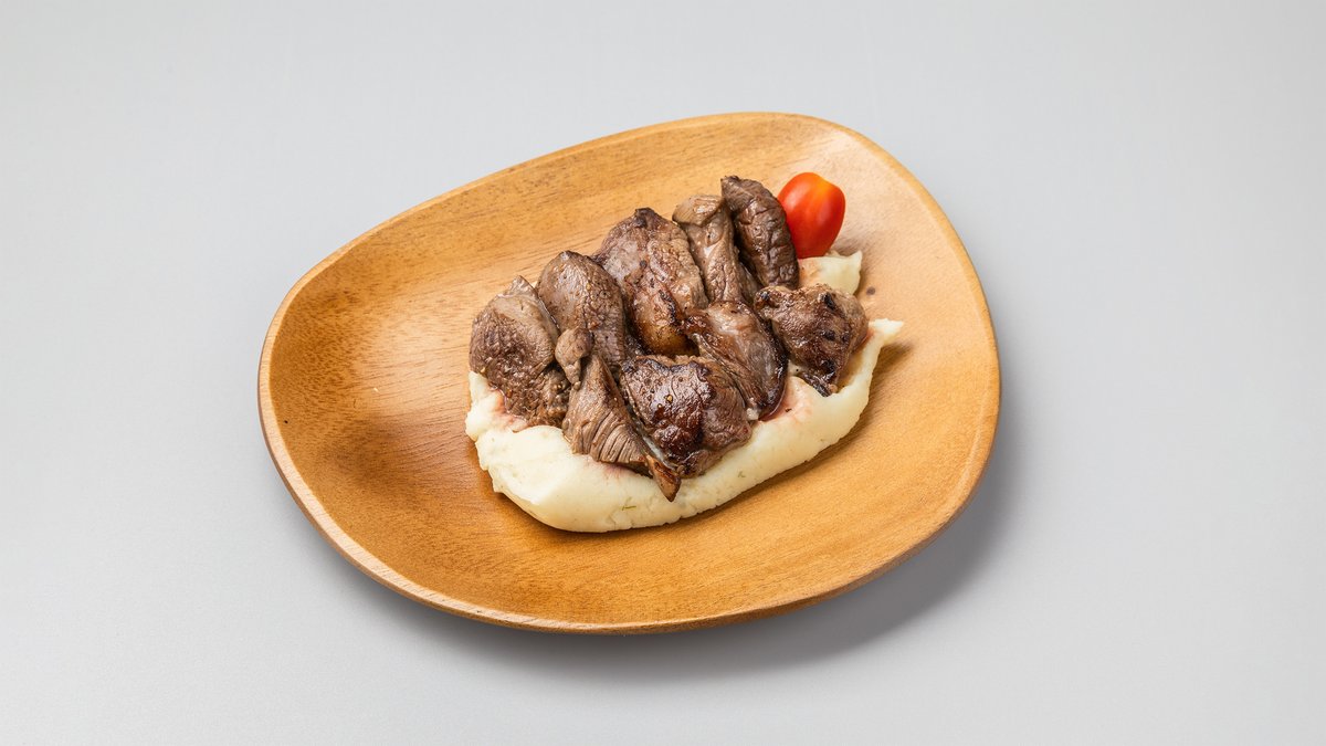 北海道名物「エゾ鹿肉」のカットステーキ※選択できませんが、マッシュポテト又は玉ねぎのソテーが付きます