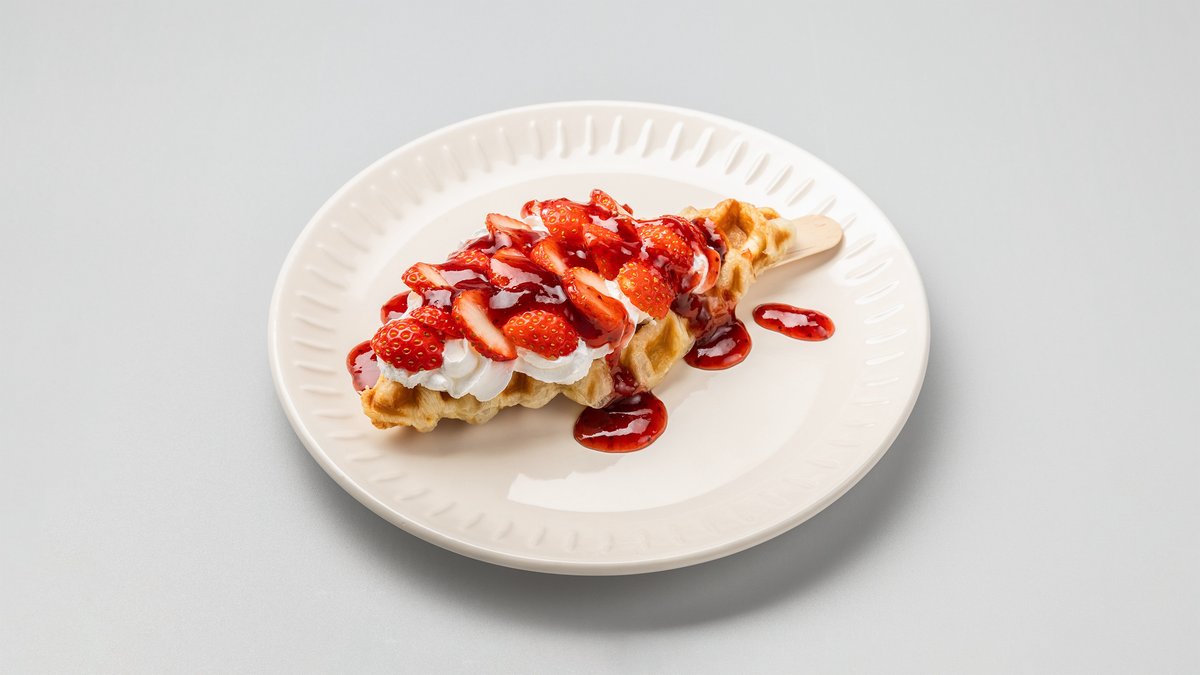 生クリームに季節のいちごとストロベリーソースがかかった映えクロッフル