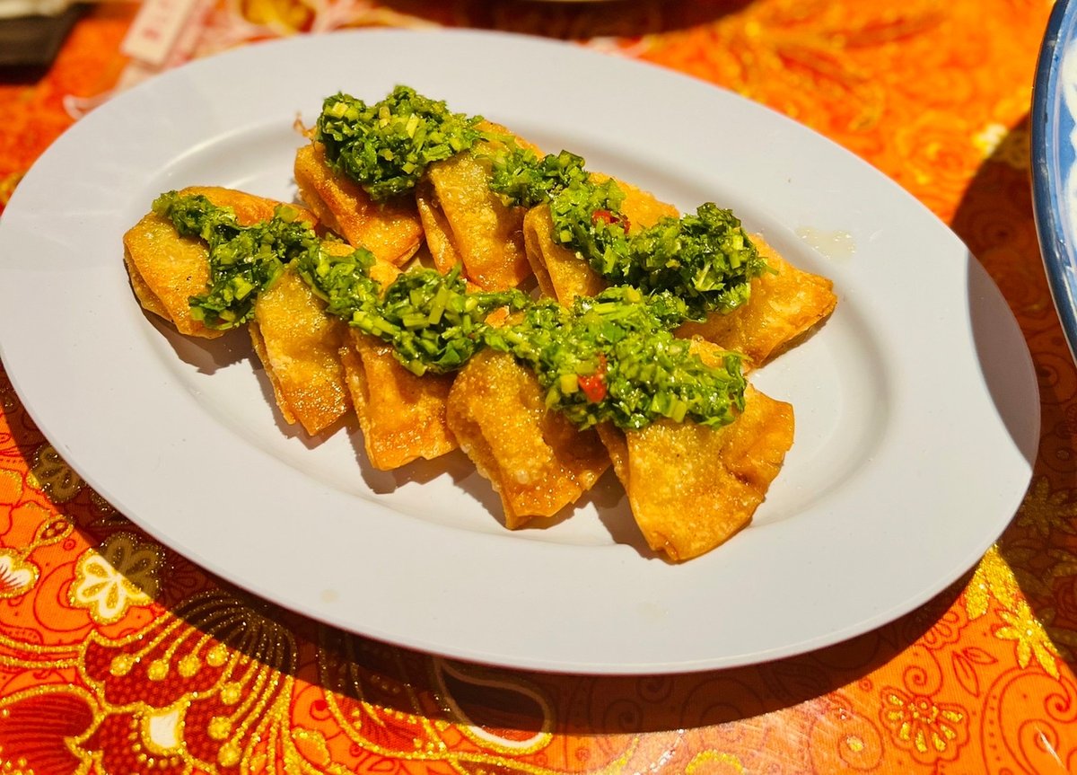 ルフスオリジナルの中華パクチーソースをかけて頂きます。 たっぷりと刻まれたパクチーに、ごま油の風味が食欲をそそります!ピリッと辛さにお酒もドンドン進みます! たっぷりパクチーですが、ごま油と和えることでパクチーが苦手な方もこれを食べてパクチーが好きになったとのお声も多数頂いております☆彡