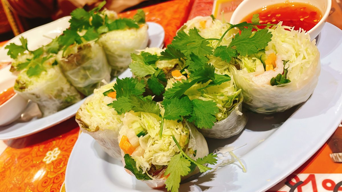 タイ料理に欠かせないパクチーとたっぷりの野菜&エビをライスペーパーで巻いたヘルシー人気料理! つまむサラダという感覚で相性抜群のスウィートチリソースをつけてお召し上がりください。
