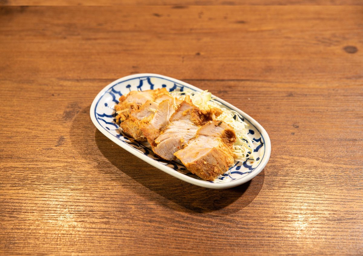 ムネ肉一枚をタイ料理で有名な〇〇のペーストに漬けこみ香ばしく焼き上げました。 通常カットは写真のようなカットですが常連さんが編み出した「薄切りカット」は通常カットの食べ応えからハムのような食感に変わります♪ご希望の方はご注文の際にお申し付けください♪ ☆ピリ辛なのでタイビールとの相性抜群☆