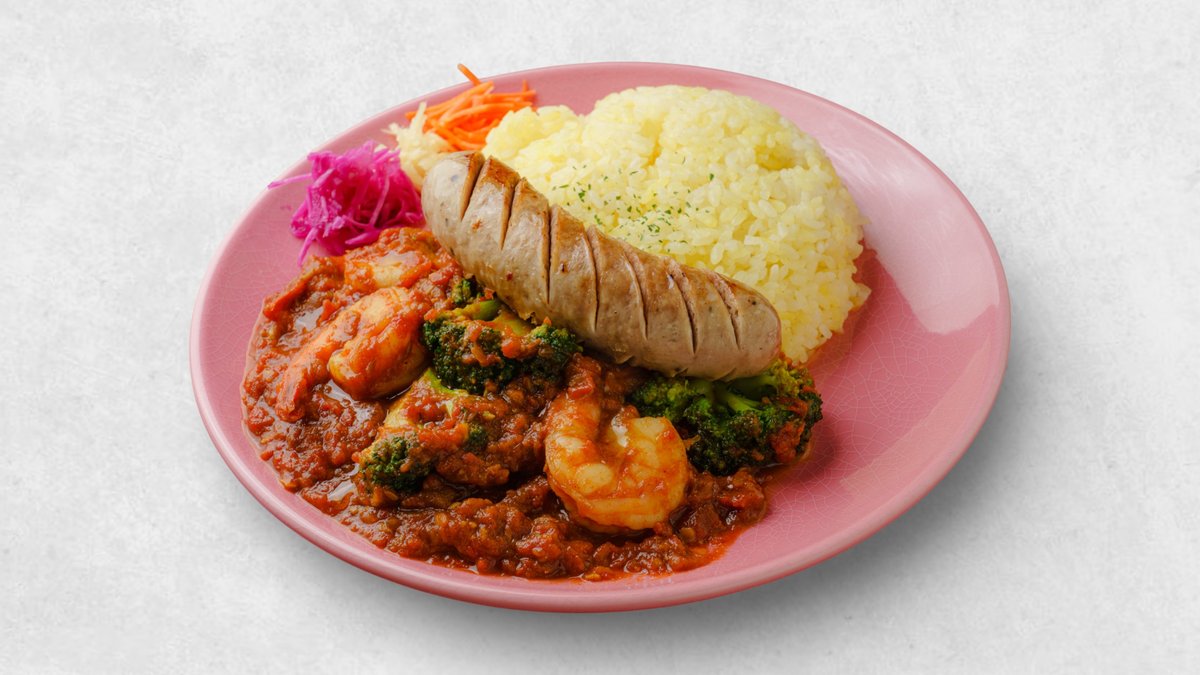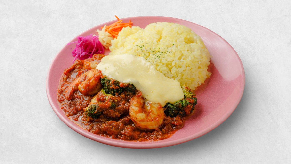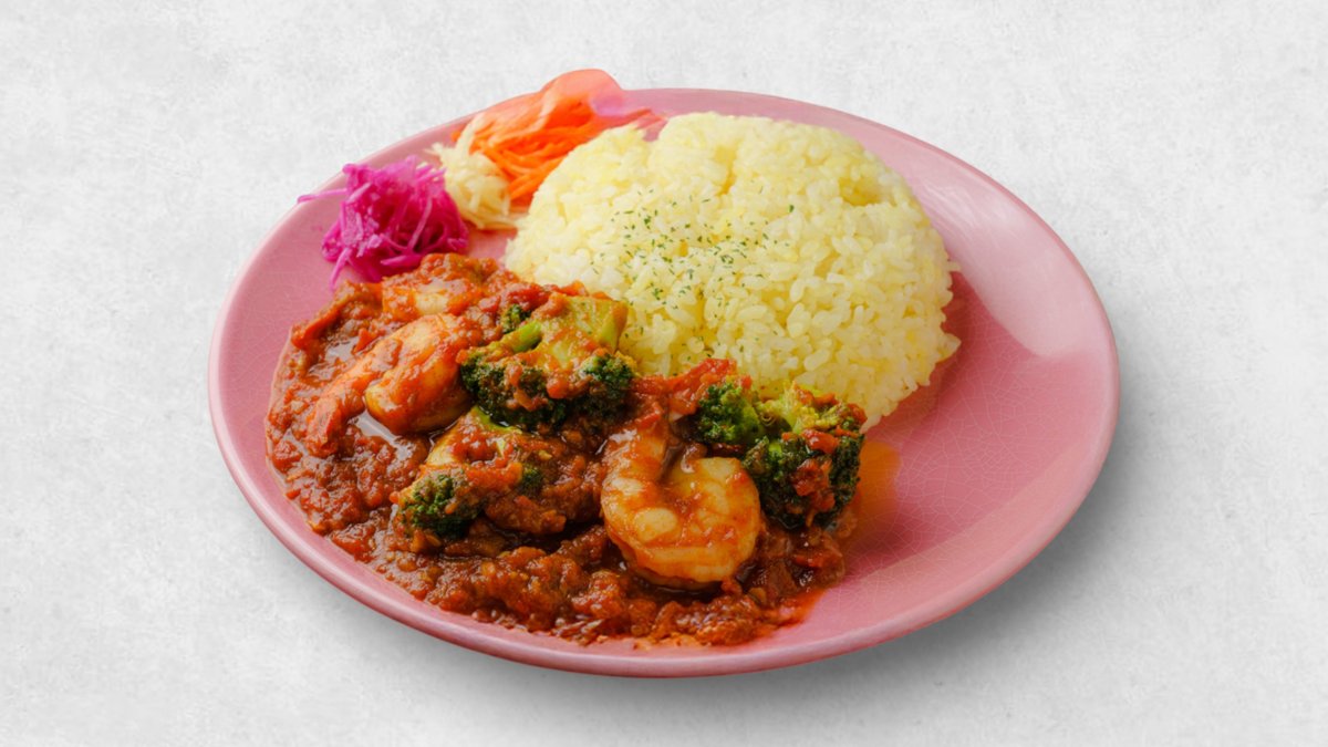 トマトの酸味と爽やかスパイスが特徴のカレーです。