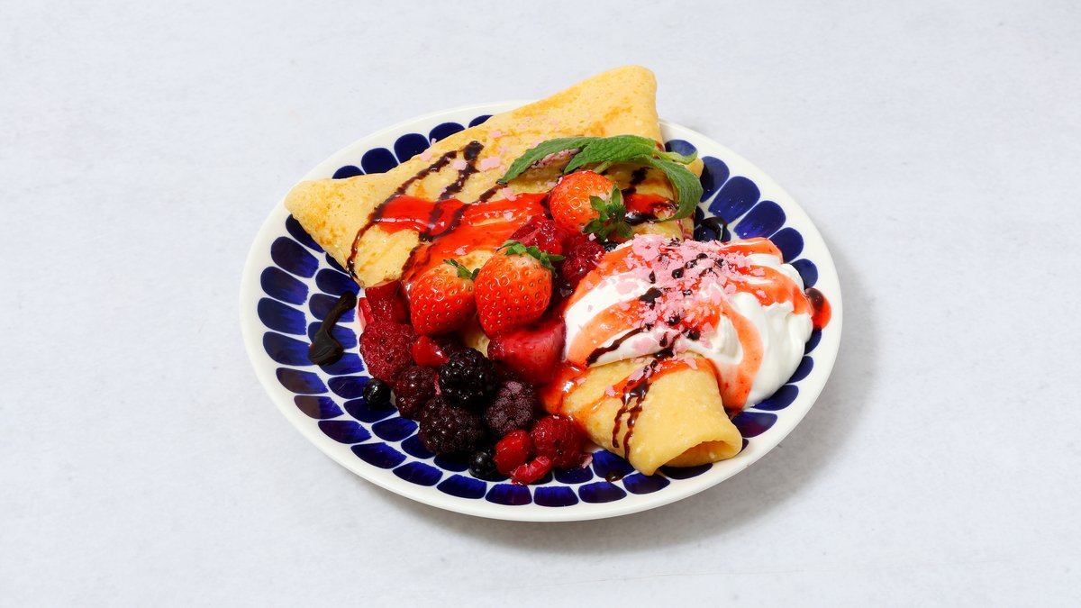 ブルーベリーやラズベリーにホイップクリームをたっぷり使用しています
