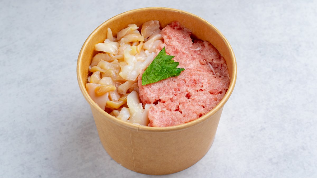 まぐろとネギトロがたっぷり入った正にまぐろマニア!!まぐろのしっかりとした食感と、ネギトロのまろやかな甘みが一度に味わえ、ひと口ごとに違う美味しさが広がる至福の一杯です。 ※ハーフ丼2つとザンギ2個がセットでの提供となっています。 まぐろマニア丼ともう一つ丼が選べます。 ※写真は一例です
