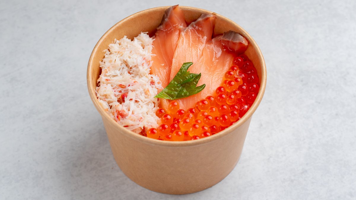 いくら、ずわい蟹、サーモンが入った豪華丼。 ※ハーフ丼2つとザンギ2個がセットでの提供となっています。 北海丼ともう一つ丼が選べます。